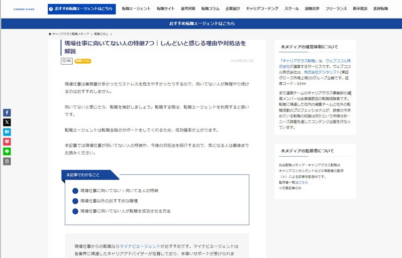 キャリアクラス転職に当協会のプレスリリースが紹介されました