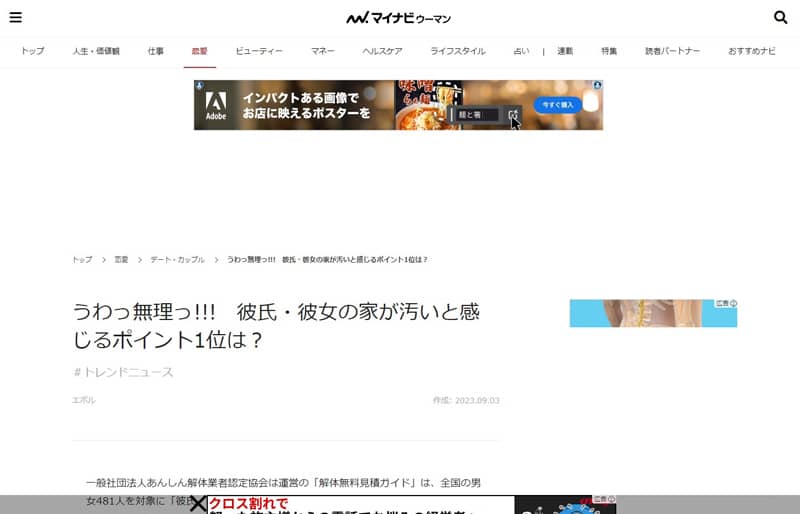 マイナビウーマンに当協会のプレスリリースが紹介されました