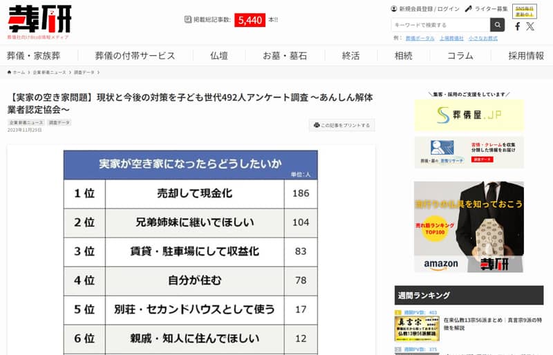葬研に当協会のプレスリリースが紹介されました
