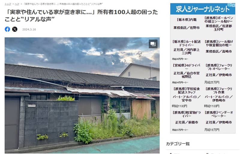 株式会社マイナビが運営する共働き夫婦向け育児情報サイト「マイナビ子育て」に当協会のプレスリリースが紹介されました。 ご紹介いただいた内容は実家の相続に関する意識調査で、実家の相続を放棄したいと思っている201人を対象にア…